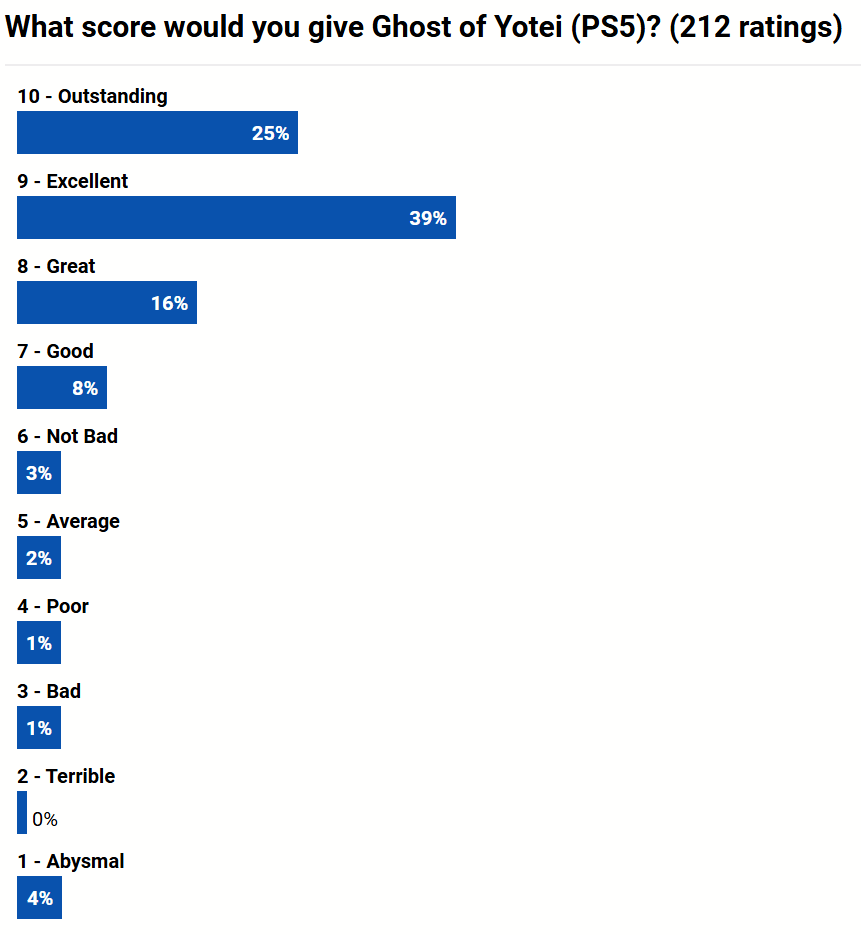 作为2020年《对马岛之魂》的续作,由Sucker Punch开发的《羊蹄山之魂》已于10月2日正式与玩家见面。近日,外媒pushsquare针对该作发起了一项民意调查,主题为“你会给《羊蹄山之魂》打几分?”,吸引了众多玩家参与投票。