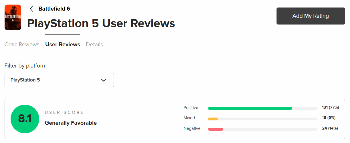 从现有评分来看,主机平台玩家对《战地6》的整体评价更为积极,而PC版本的评分相对略低,具体差异原因有待结合玩家评论进一步分析。