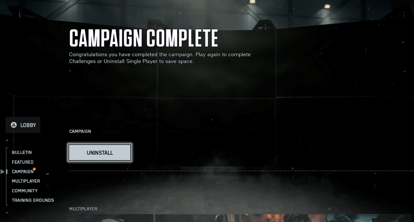 值得关注的是,游戏加入了一项实用设计:当玩家完成单人战役后,系统会弹出是否卸载该模式的选项,以帮助用户释放更多硬盘存储空间。对于安装体积普遍较大的现代3A游戏而言,这一功能得到了不少玩家认可。当然,若玩家计划重新体验战役内容,或对硬盘空间占用不敏感,也可选择保留该模式。