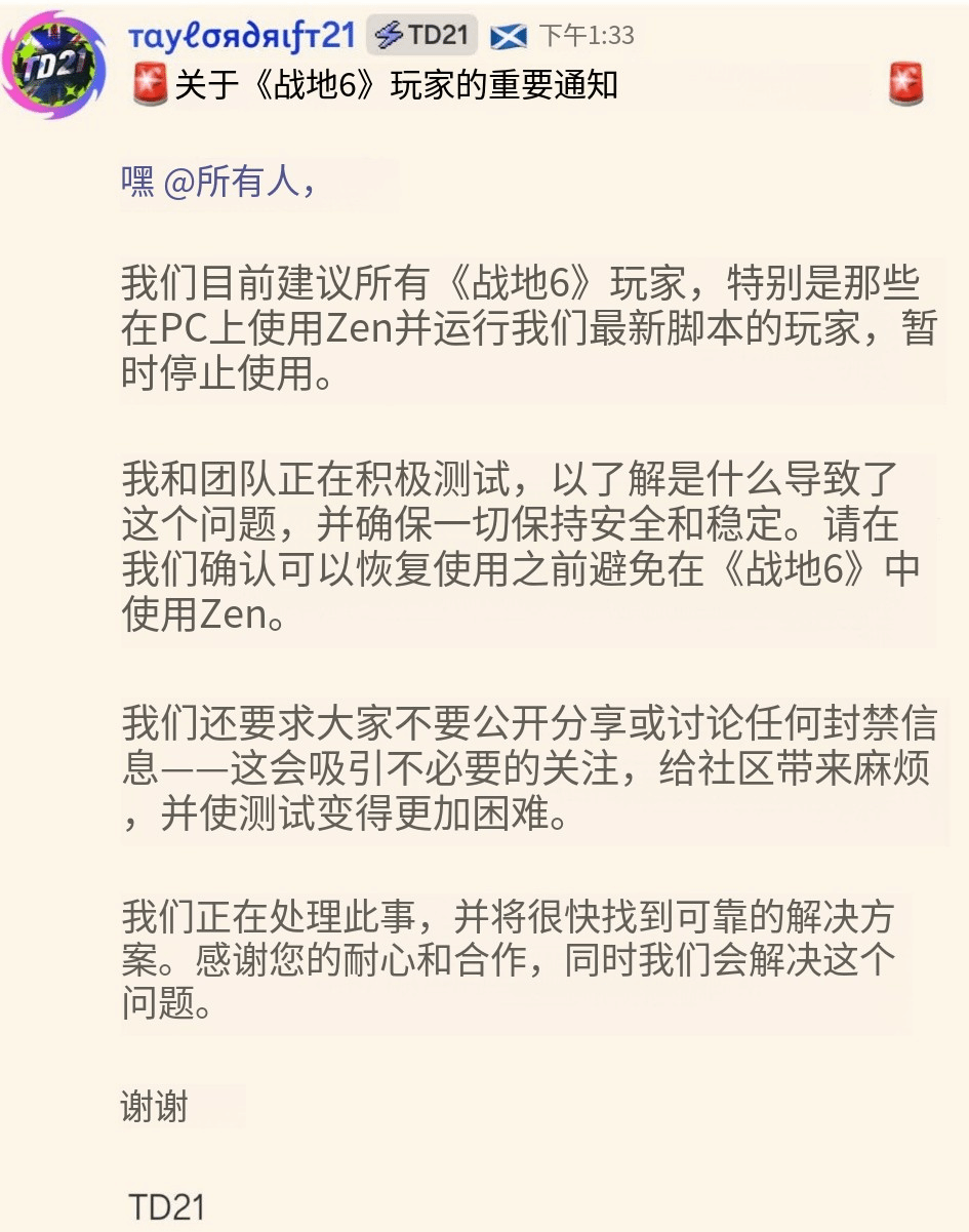 面对EA的这一强硬反作弊行动,Cronus开发团队已公开对此事作出回应,他们建议用户“暂时停止使用”相关产品,同时表示正在积极寻找解决办法。不过有观点认为,这场反作弊与作弊之间的对抗,大概率会伴随《战地6》整个运营过程。