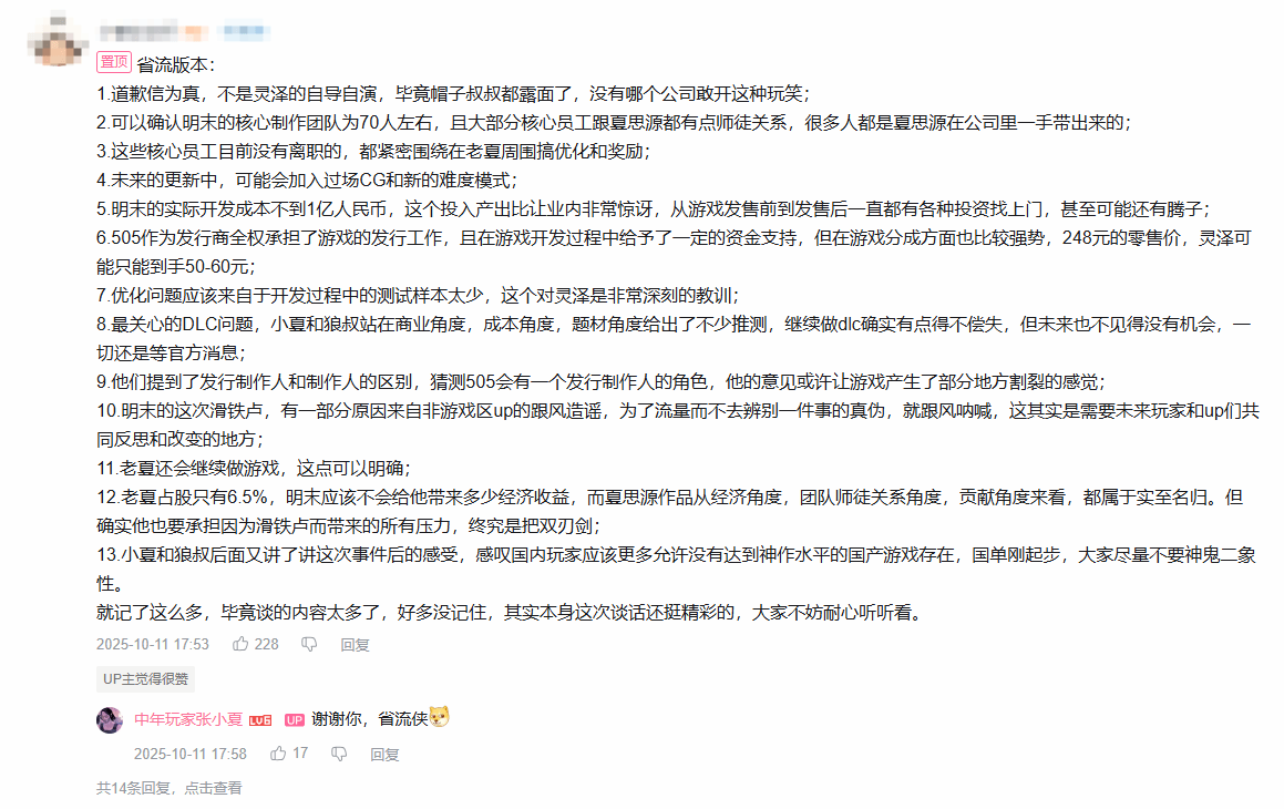 直播结束后,有玩家整理了视频中的核心要点,感兴趣的玩家可通过下方链接查看完整总结内容。值得关注的是,直播中还提及夏思源未来或许会继续投身游戏创作,引发不少玩家对其新作的期待。