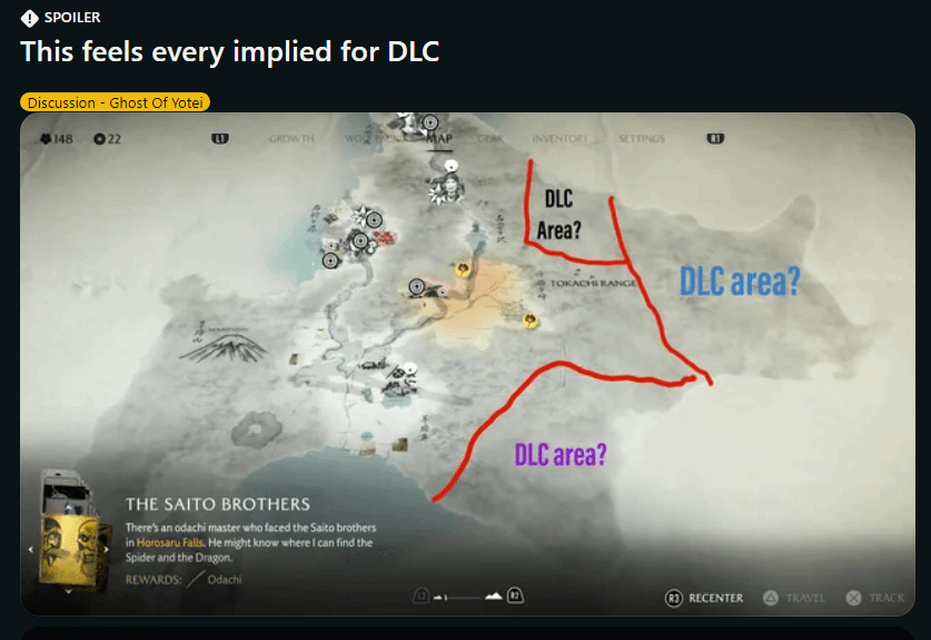 随之而来的问题是——《羊蹄山之魂》的DLC故事将发生在哪个区域?有玩家提出,答案或许早已暗藏在游戏地图之中。