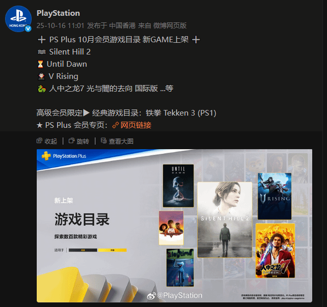 本次二档会员新增游戏包括:《寂静岭2:重制版》(PS5)、《直到黎明》(PS5)、《夜族崛起》(PS5)、《如龙7》(PS5/PS4)、《Poppy Playtime》第1章(PS5/PS4)以及《黄昏降临时》(PS5/PS4)。