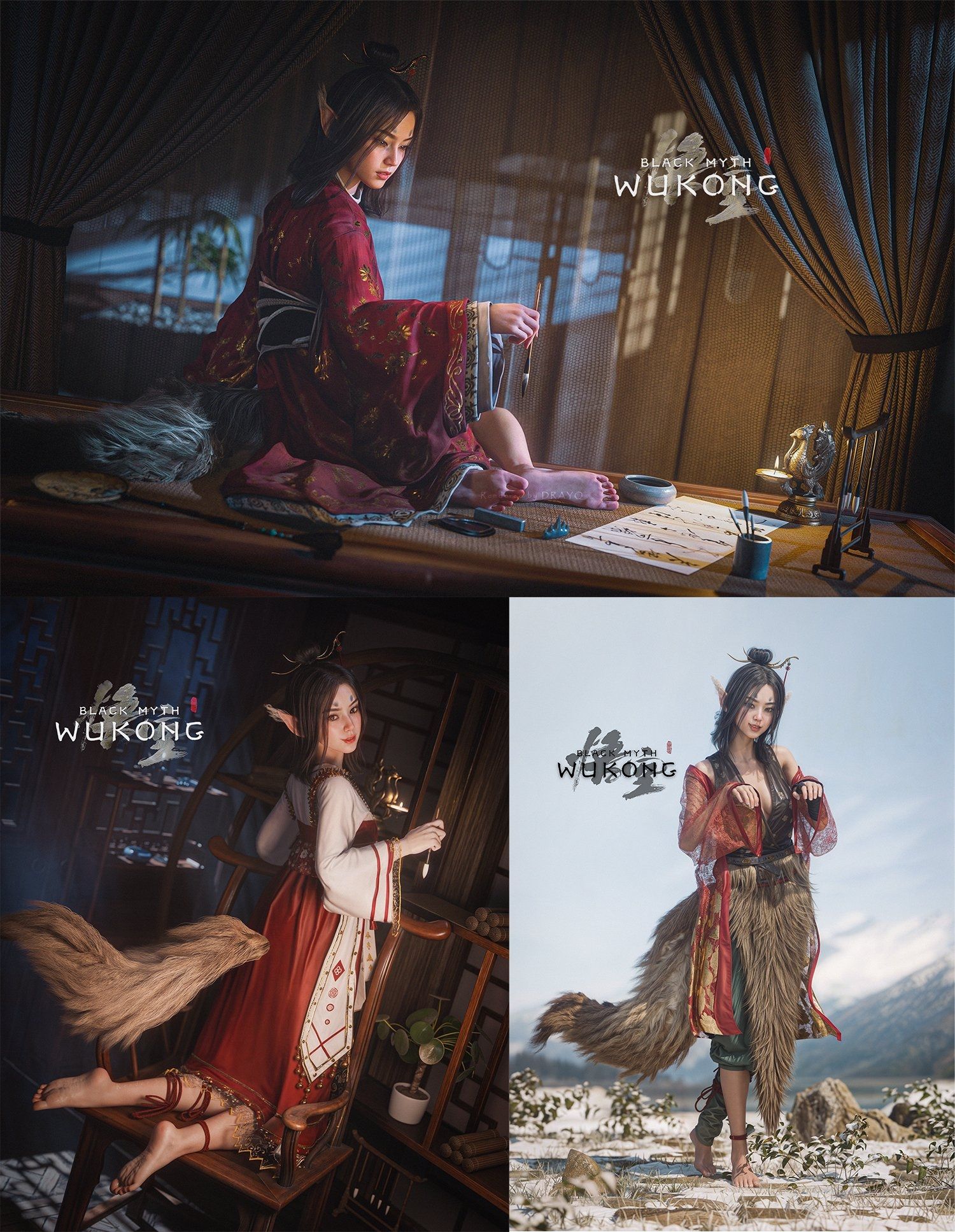 10月16日,@drayqin在推特上分享了自己制作的部分《黑神话:悟空》同人作品,并配文称:“真不敢相信我已经做了这么多《黑神话:悟空》的渲染图。你最喜欢哪一位?亢金星君还是萍萍?”