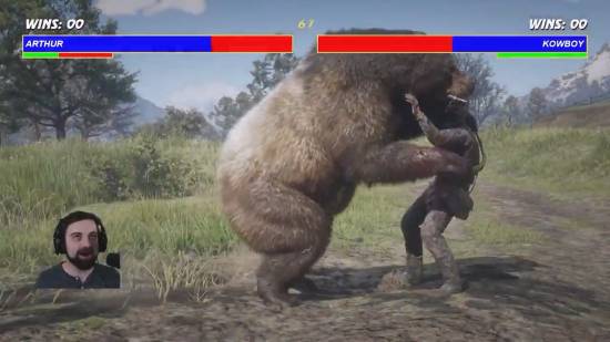 在这个特别的模组里,只要主角亚瑟开启拳斗模式,游戏镜头就会自动切换为《真人快打》经典的横版视角。Blurbs不仅为其加入了生命条、特色音效和连击系统,更精心设计了专属终结技。值得一提的是,格斗的对手并不限于人类NPC,就连棕熊、鳄鱼这类野外凶猛野兽也能成为对战对象。