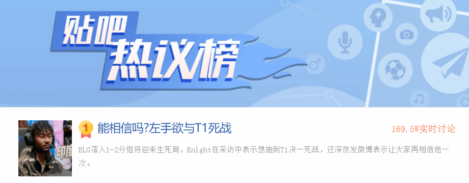 这番表态迅速引发电竞圈热议,截至发稿时,贴吧话题#能相信吗?左手欲与T1死战#已攀升至热议榜首位。在相关讨论中,玩家态度呈现明显分化:部分粉丝选择支持Knight,认为选手在困境中展现出的斗志值得肯定,期待他能带领队伍绝境翻盘;但更多网友则流露失望情绪,有评论提到"每次相信后换来的都是失误频发",甚至直言"现在看LPL前列队伍打外战,都怕重蹈16强覆辙",不少人抱着"看乐子"的心态关注后续对阵。