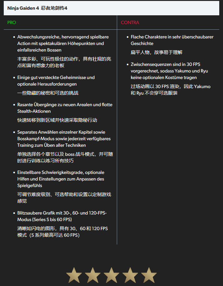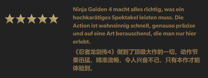 由Team Ninja与白金工作室联合开发的高速动作游戏《忍者龙剑传4》,于今日(10月21日)正式发售。外媒Eurogamer德国分部同日发布了本作的评测报告,给出五星满分评价,并称赞其“做到了顶级大作的一切”。