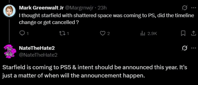 事实上,NateTheHate此前就已证实《星空》确实会推出PS5版本,并且透露开发团队最初“计划”在2025年对外公开移植相关意向。