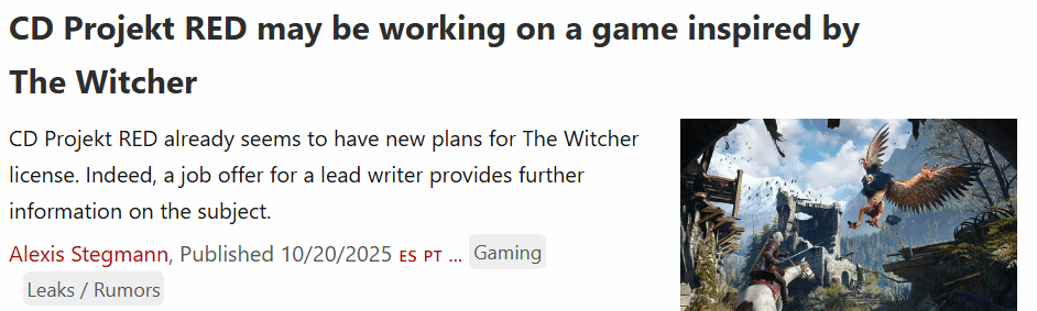 这则招聘信息引发了外界两种不同的猜测:一方面,该职位可能是为《巫师4》的续作开发所设;另一方面,也可能意味着CDPR正在同时推进多个基于《巫师》世界观的项目。无论最终情况如何,都能看出这家波兰游戏开发商正持续深耕这一标志性的奇幻IP,未来或许会通过多线叙事的方式,进一步拓展《巫师》宇宙的深度与广度。