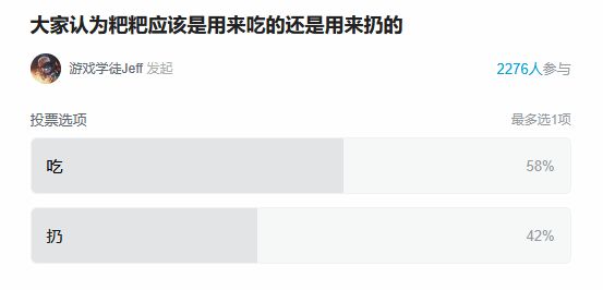 该投票最终以42%玩家选择"扔弃"、58%玩家支持"食用"的结果落下帷幕。而在昨天(10月21日),游戏已正式将"食用粑粑"这一玩家票选出来的功能更新上线。