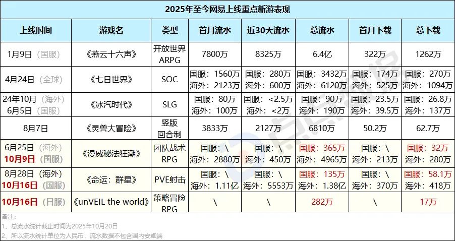 据新浪游戏援引点点数据统计显示,网易游戏在今年前三季度的手游新品布局出现显著收缩。数据对比显示,去年同期网易还推出了10余款重点新游,而2025年前三季度仅有4款新作面市,数量同比大幅下滑。与此同时,10月集中上线的三款新游市场表现遇冷,日均流水均未能突破百万门槛,叠加近期多位核心研发人员离职的消息,网易游戏正面临产品与人事的双重考验。