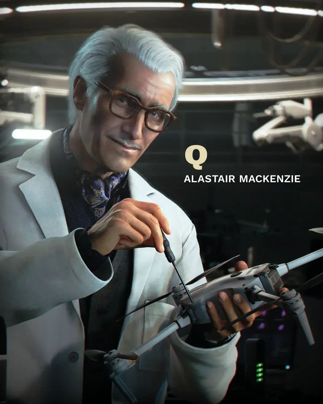 五十岁出头,职业履历涵盖Q实验室机电工程师、应用科学部项目负责人,目前担任军情六处军需官,由Alastair MacKenzie出演。这位业界顶尖的工程师痴迷于美学设计,热衷于研发各类精巧的装备装置。