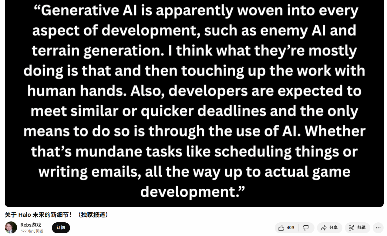 据《滚石》杂志报道,Halo工作室代表Damon Conn在近日采访中明确了团队对AI的使用立场:“我想清晰地表明……人类拥有无限创造力,游戏本质是人类智慧的结晶。而AI的作用在于改进工作流程,为游戏开发提供多方面支持。”