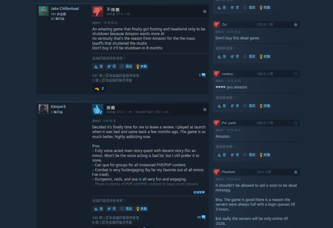 尽管游戏暂不会立即停止服务,但自亚马逊向玩家告知停更消息后,《新世界:Aeternum》的Steam商店页面迅速涌现大量负面评价,玩家纷纷对这一操作表达不满。不少玩家将矛头指向亚马逊的决策,认为问题根源在于公司层面的贪婪,而非游戏本身或开发商的运营服务存在缺陷。毕竟就在今年,该游戏推出新内容后,Steam平台的同时在线玩家数曾一度突破5万人。