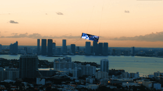 这场大胆的挑战中,工作人员登上直升飞机,将目光投向远处由另一架更高飞机悬吊的巨型屏幕。由于双方处于非相对静止状态,参与者不仅要持续追踪不断变化位置的屏幕,精准捕捉游戏角色与敌人的动态,还要克服高空环境带来的心理压力,难度可想而知。