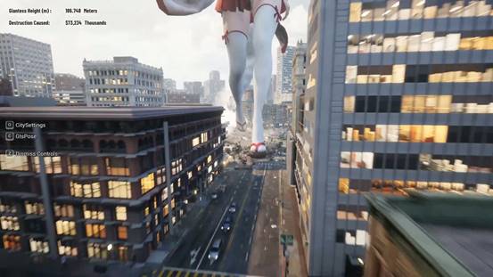 作为一款沙盒模拟作品,游戏为玩家提供了双重角色体验:既能够扮演高耸入云的女巨人对城市展开破坏,也可以化身微型渺小的普通市民,在疯狂混乱的环境中挣扎求生。
