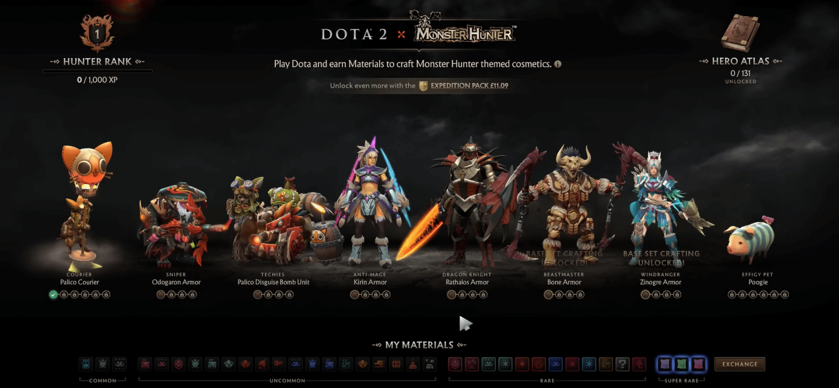 联动的核心亮点之一,是将《怪物猎人》系列的标志性铠甲套装融入《Dota2》的英雄体系,共推出六套主题物品套装。每套套装均保留了原作铠甲的视觉精髓,同时适配对应英雄的技能特性与造型风格:狙击手化身“惨爪龙猎手”,风行者披上“雷狼龙战甲”,敌法师获得“麒麟铠甲”身心,龙骑士、兽王、工程师也分别拥有火龙、骨刺、艾露猫伪装炸弹部队等专属套装。