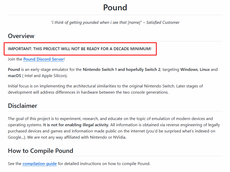据外媒报道,Github平台上已出现两个针对NS2的模拟器开发项目——“Oboromi”与“Pound”。其中“Oboromi”标注为“研发中项目”,而“Pound”则处于“早期模拟器”阶段,且近期新增了一行醒目的全大写提示:“这个项目至少还要十年才能完成!”