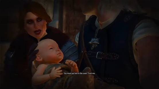 3. 《巫师3》里,把婴儿放进火炉。“恶灵缠身”任务中的抉择堪称《巫师3》最煎熬的时刻:杰洛特要在“相信凯瑞丝把婴儿丢进燃烧火炉”和“凭直觉救人”之间二选一。前者是解除诅咒的计策,后者会让事态恶化,但没人能轻易接受“将婴儿放入烤炉”的操作,那种违背直觉的纠结感,比任何战斗都让人不适。