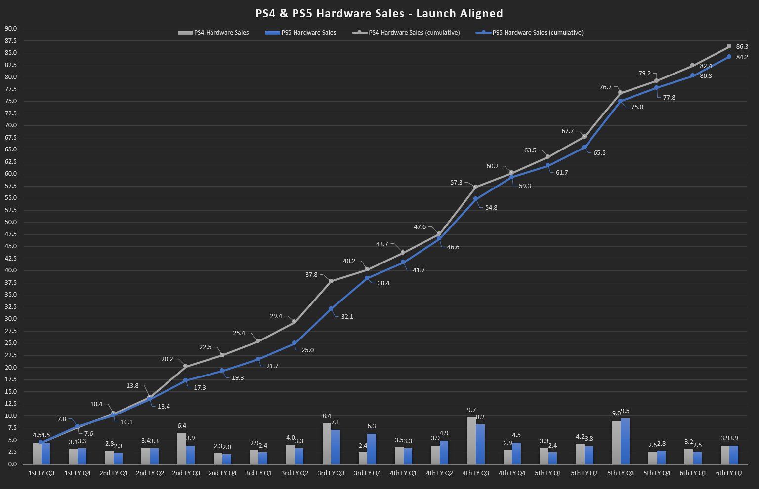 从销售势头来看,PS5保持着强劲增长。在FY25第二季度(Q2)中,其硬件销量达390万台,延续了高位出货表现。横向对比PS4同期数据,两者差距不断缩小,显示出PS5在市场接受度上已逐步追平上一代旗舰机型。