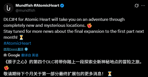 Mundfish工作室今日发布动态,对《原子之心》的第四个DLC进行预热。作为本作的最终扩展包,该DLC将带领玩家开启探索全新神秘地点的冒险旅程,更多详细信息预计于下个月公布。