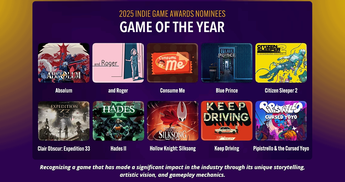 除了奖项扩容,盛典还强化了观众参与度,新增“社区精选”环节,允许玩家提交自己喜爱的各类独立游戏,让大众意见成为奖项评选的重要补充。而提名名单的产生则由多元化评审团负责,成员涵盖独立游戏展策展人、行业专家,以及游戏新闻与内容创作领域的知名人士,确保评选视角的全面性与专业性。
