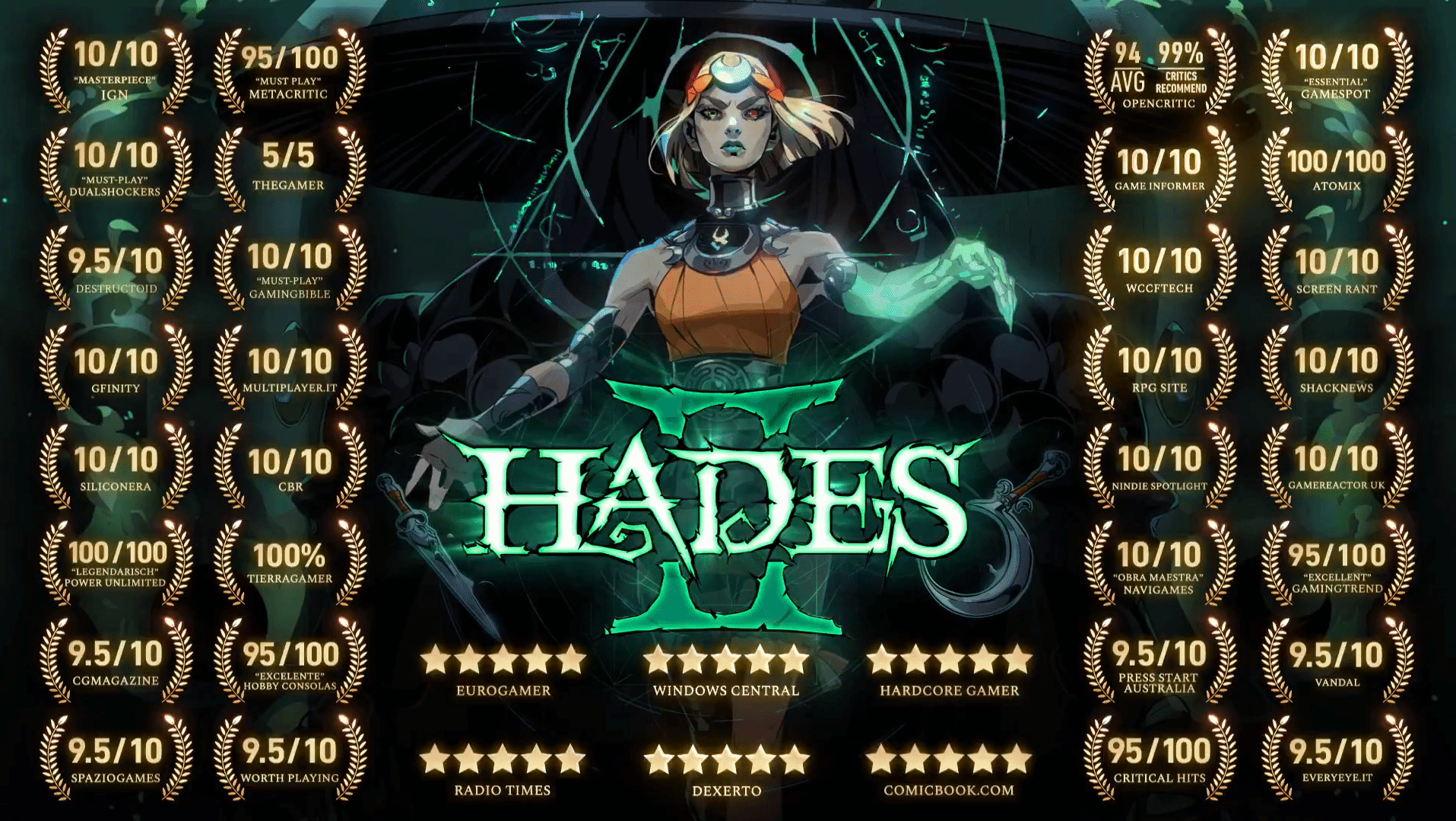 Supergiant Games官方公布《哈迪斯2》媒体赞誉墙,这款9月26日正式推出的续作再度引发关注——不仅M站媒体均分高达95分,与《塞尔达传说:旷野之息》NS2版、《塞尔达传说:王国之泪》NS2版并列年度最佳新作,更有大量媒体给出满分评价,成为2025年游戏圈的“口碑王者”。