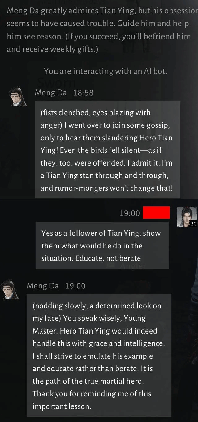 尽管《燕云十六声》在Steam平台快速积累了约19万同期在线玩家,但相比在线人数,玩家们更热衷于"测试"AI NPC的反应边界,看这些数字角色对荒谬剧情能做出何种回应。Reddit论坛上已涌现大量玩家与AI NPC的互动趣事:有玩家成功让名为"赵大力"的NPC相信自己的角色怀了他的孩子,并向其索要抚养费,随后又告知"孩子死亡";更有玩家提议延伸剧情,让赵大力去追捕"复活的僵尸婴儿"。