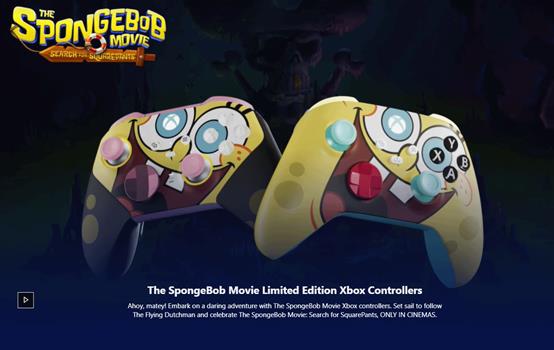 其中,Xbox Series联名手柄包含两大类型:一款是亮黄色海绵造型的普通款,经典还原海绵宝宝的标志性形象,色彩明快活泼,一眼就能唤起童年记忆;另一款则支持在Xbox设计实验室中自由定制部分外观,玩家可根据喜好调整细节,打造专属的海绵宝宝主题手柄。