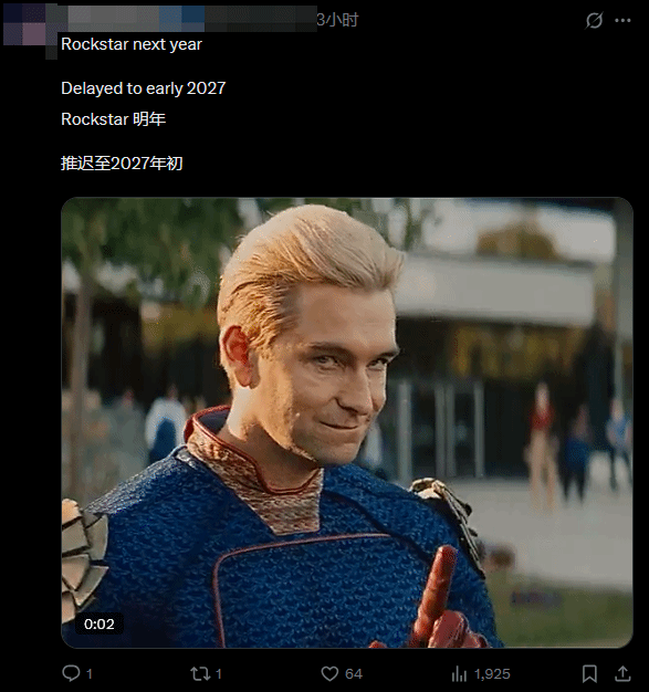 不少玩家结合Rockstar过往作品的开发节奏吐槽,直言“根据前科,搞不好还会有第三次‘距发售365天’”,言语间满是对游戏跳票的调侃;但也有玩家保持期待,表示会耐心等待这款开放世界大作的到来。