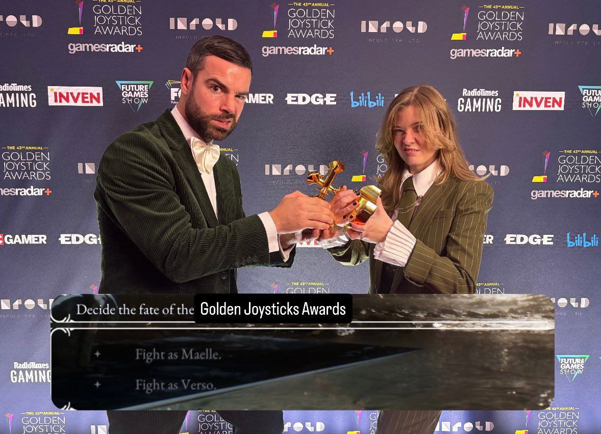 金摇杆游戏大奖颁奖典礼落下帷幕,《光与影:33号远征队》成为当晚最大赢家之一,一举斩获7项重量级奖项。颁奖典礼结束后,金摇杆官方推特迅速晒出游戏获奖合影图,更直接下场玩梗,发布了围绕“维尔索还是玛埃尔”展开的剧透向梗图,引发玩家热议。