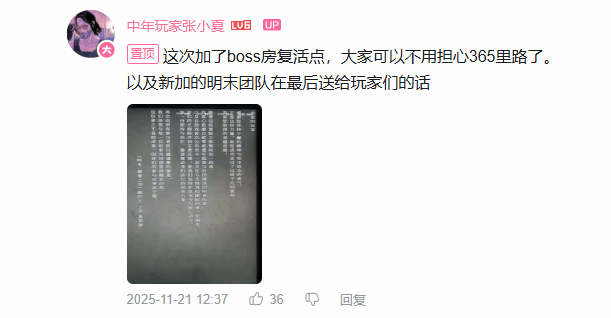 《明末:渊虚之羽》1.7版本已正式更新,除豪华版专属内容、重生挑战功能及免费头饰装备等核心更新外,制作人夏思源在版本结尾新增的一段寄语,引发玩家广泛关注与共鸣。这段文字经由B站Up主@中年玩家张小夏在视频评论区附上截图后,迅速成为玩家热议的焦点。