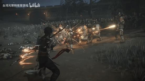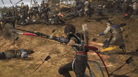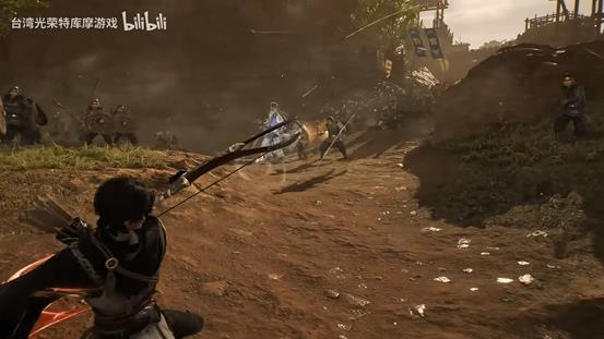 此次曝光的新武器“弓”带来了独特的战斗机制:玩家按住【GUARD】键并发动攻击,即可触发远距离箭矢攻击,实现战场中的远程压制。更关键的是,特定攻击能积累“气势”值,当“气势”积满后,可快速释放弓箭的重攻击,无论是清场还是针对单体目标,都能展现出强劲威力,为“一骑当千”的爽快感增添新维度。