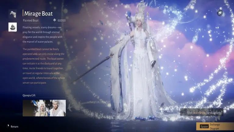 【人间仙】的获取过程并不简单。玩家首先需要建造【浮景舫】私人游船才能解锁该皮肤,而造船正是成本的核心所在:需用120个石头兑换浮景星梦残页,仅这一项就需28.8万元,此外还需获取浮景龙骨图。尽管游戏设有保底机制,避免非酋玩家陷入无底洞,但据玩家测算,触发保底的累计成本约达4.2万美元。