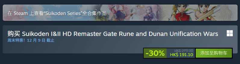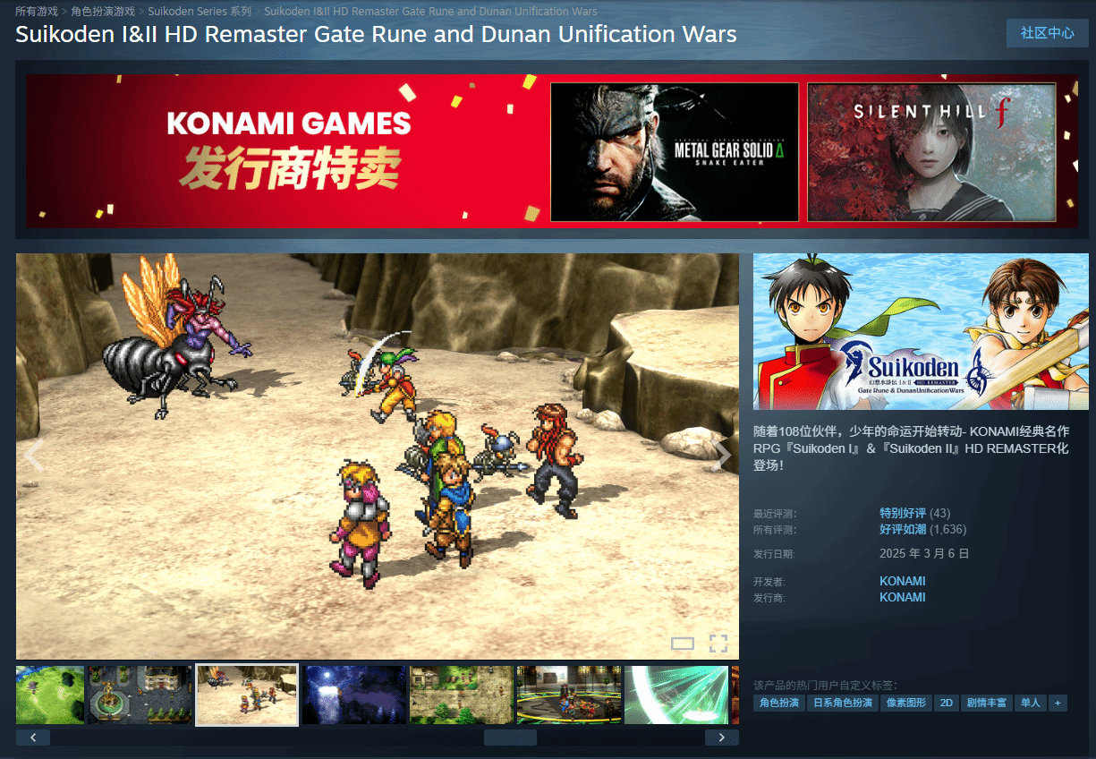 科乐美旗下经典日式RPG作品《幻想水浒传1&2 高清复刻合集》近期在Steam平台迎来价格新低谷,当前售价降至¥117.6,且支持官方中文,引发玩家关注。作为承载无数情怀的经典复刻,该合集目前在Steam上收获了95%的超高好评率,整体评价为“好评如潮”。