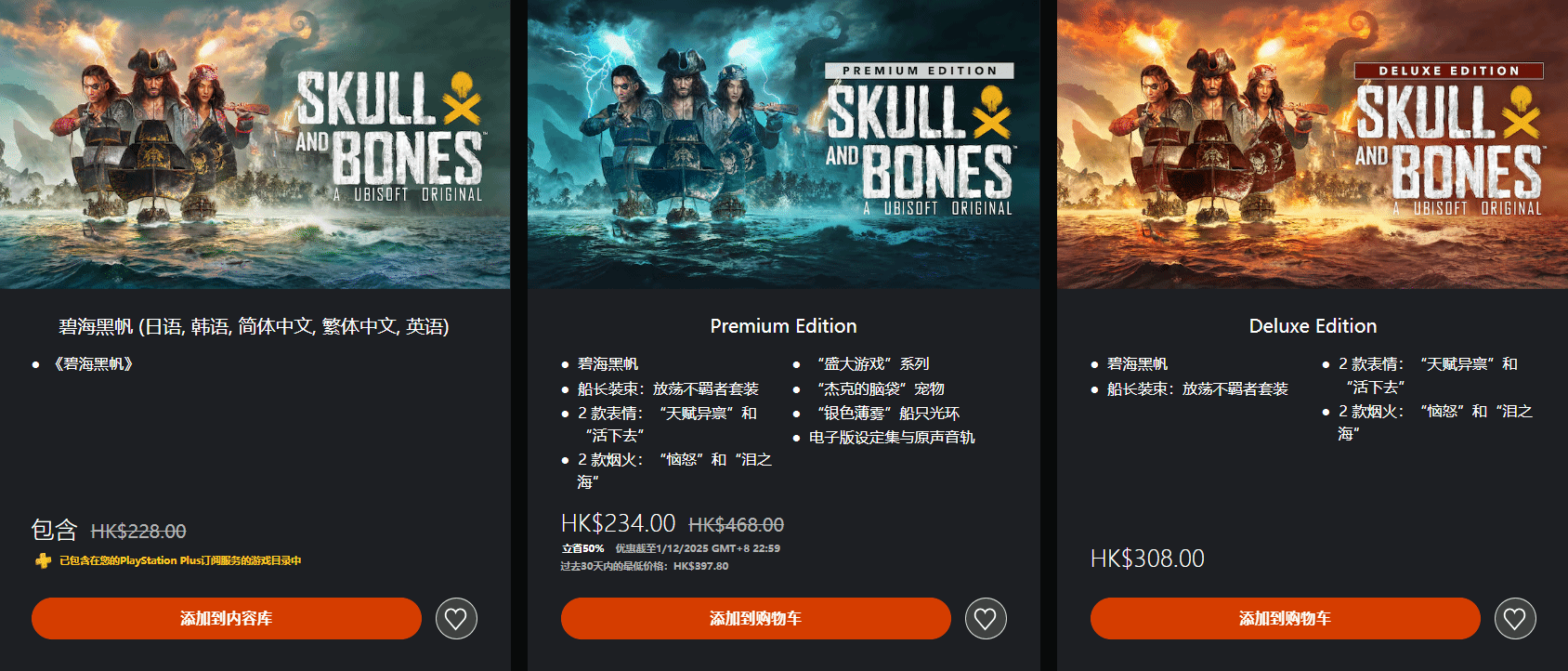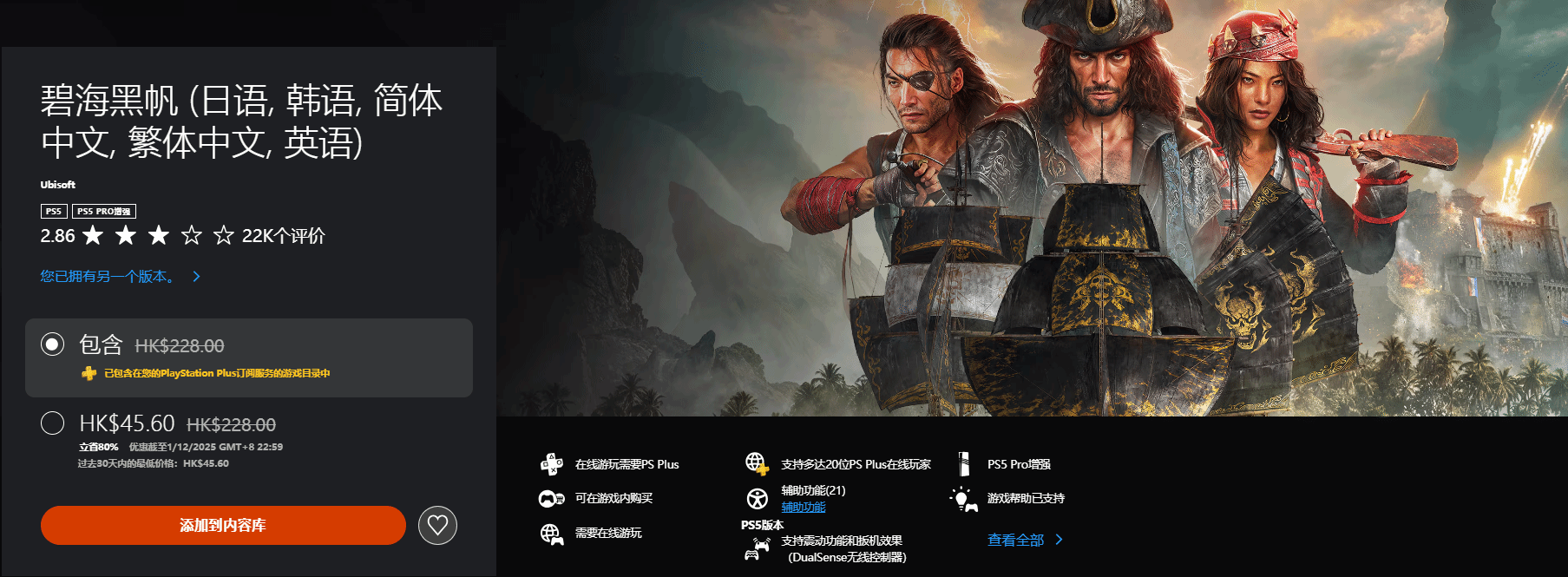 在PS Store平台,游戏标准版原价228港元,当前开启2折特惠,折后仅需45.6港元;高级版则享受5折优惠,现价234港元;豪华版暂未参与折扣,保持308港元原价。而Steam平台的史低价格更是低至19.8元,相比动辄80美元(约568港元)的其他3A新作,性价比优势显著。