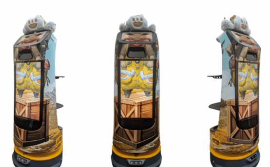 这款KettyBot不仅外观还原了可爱的艾露猫形象,还配备了酒吧专属装饰,让整体造型更具主题氛围。语音方面也进行了全新定制,除了常规互动语音外,当客人庆祝生日时,还能听到专属的特别语音,增添了互动的惊喜感。