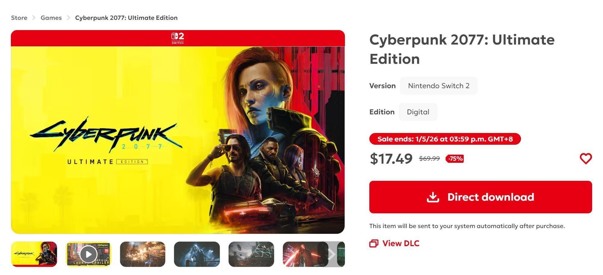 此前登陆美服eShop的《赛博朋克2077:终极版》突发2.5折骨折价,17.5美元(约122元人民币)即可入手,相较于70美元的原价堪称血赚。然而这波福利仅持续12小时就紧急回调至原价,让不少错过的玩家拍大腿,而外网玩家热议后推测,此次乌龙大概率是临时工误将NS版《巫师3》的折扣信息套用到了《赛博朋克2077》上。