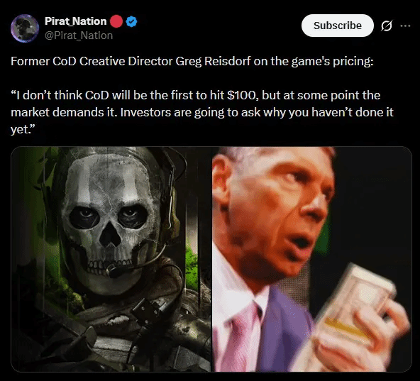 前《使命召唤》创意总监Greg Reisdorf近期在采访中直言,100美元定价的3A游戏终将成为现实,当前整个行业都处于观望状态,没有厂商愿意成为首个打破现有定价体系的“出头鸟”。“100美元定价的游戏最终一定会出现,只是没人想做第一个吃螃蟹的人。所有发行商都在观望。”他的这番表态,道出了当下行业对涨价的普遍心态。