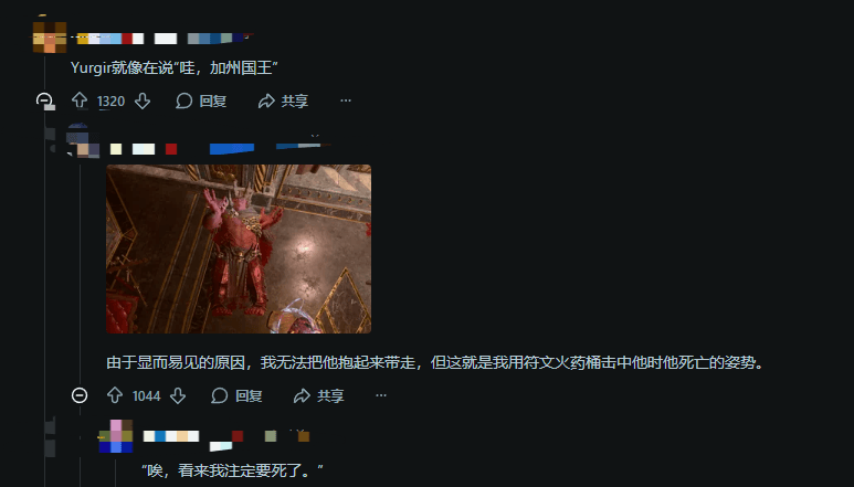 面对其他玩家的好奇,@Longwinter1641在评论区大方分享细节:原本计划收集更多NPC尸体,但受限于电脑卡顿问题只能中途停止。更有趣的是,他还打算后续将这些杂乱堆放的尸体重新整理排列,让这份“收藏”更显规整。