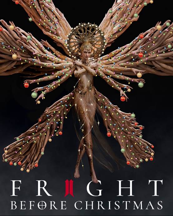 海报主角正是此前预告片中短暂露脸的女性角色Scion,她身着繁复华美的厚重衣装,背部延伸出大量形似手臂的复杂构造,勾勒出超越凡俗的诡谲神性。颇具反差感的是,官方在这些令人心生寒意的“手臂”与躯干之上,挂满了色彩缤纷的圣诞彩灯,营造出“暗黑首领强行融入节庆”的奇妙观感,兼具惊悚与滑稽的双重特质。