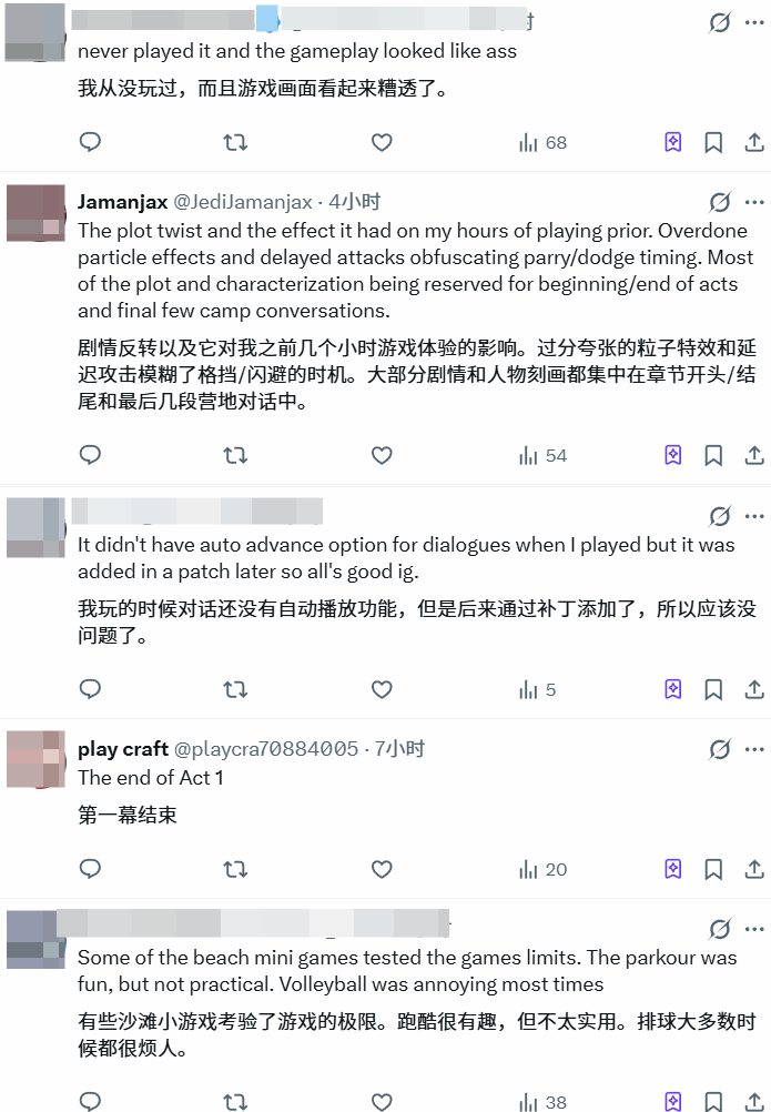 除了细节与机制问题,玩法与战斗设计也引发了争议。不少动作游戏死忠粉明确表示,“只要是回合制就不碰,即便加入了闪避机制也无法改变态度”,玩法偏好的差异让这款游戏难以讨好所有玩家。而在硬核玩家眼中,后期过于杂乱的粒子特效同样致命——纷飞的特效严重干扰了对格挡、闪避时机的判断,让原本考验操作的战斗变得混乱不堪。