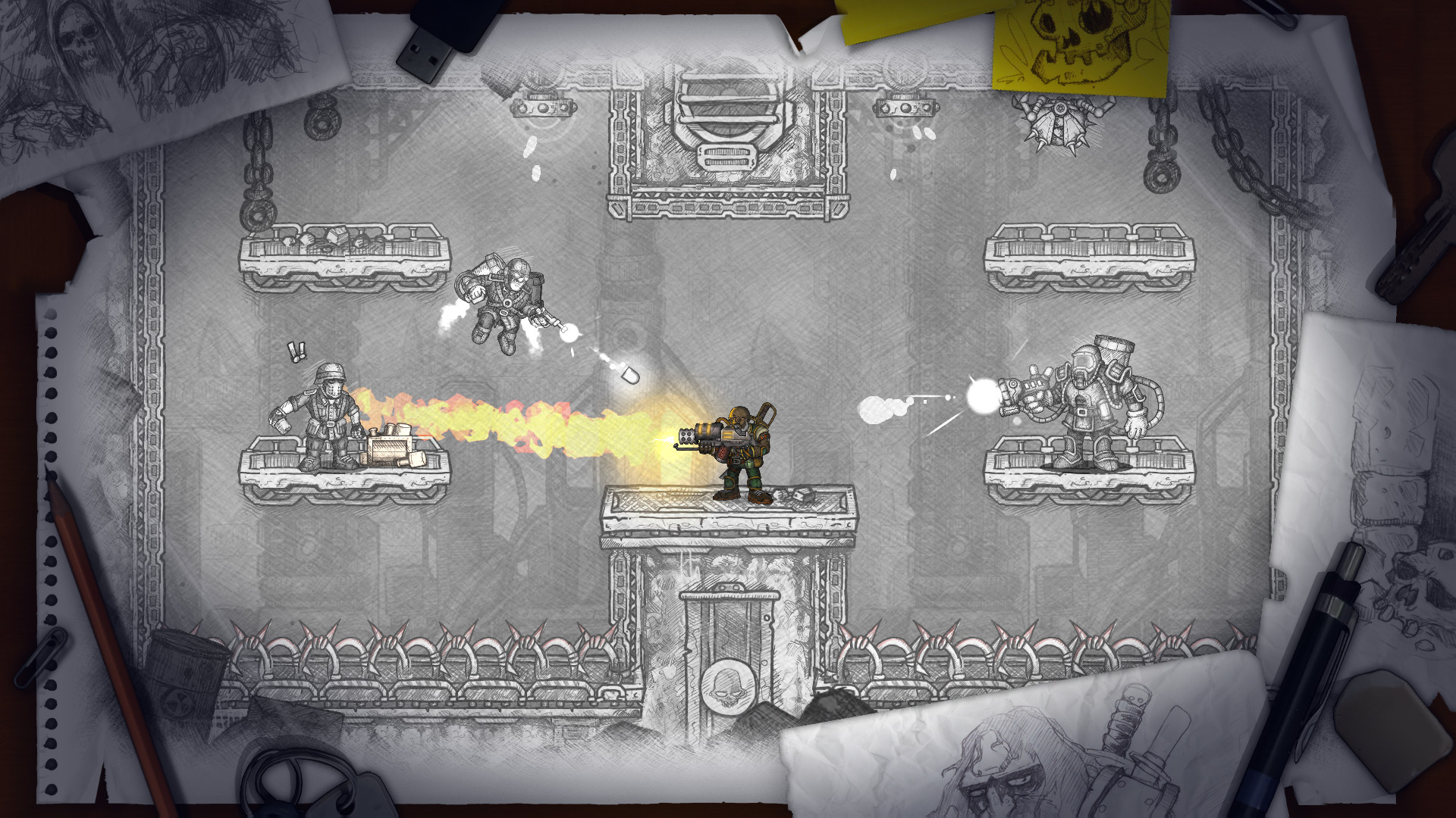 结合源自现代轻度 Roguelike 平台游戏(如《死亡细胞 (Dead Cells)》和《盗贼遗产 (Rogue Legacy)》)的灵感,融汇经典平台跳跃游戏(如《魂斗罗 (Contra)》与《合金弹头 (Metal Slug)》)的怀旧记忆,《Fury Unleashed》得以成就。我们在这款作品上花费了五年时间精心琢磨,确保体验如同上述游戏一样令人记忆深刻 - 我们完全相信,你绝对不会感到失望。