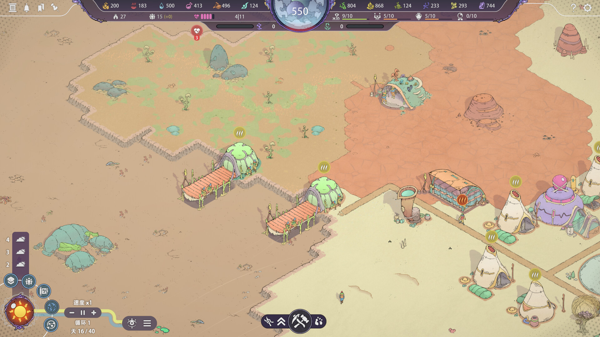 在探寻知识的过程中,你也有机会接触到不少新建筑。专事开采、提供社交空间、种植可收获作物、打造文化核心……功能各异的新建筑和新发现是城市发展过程中的一大助力。