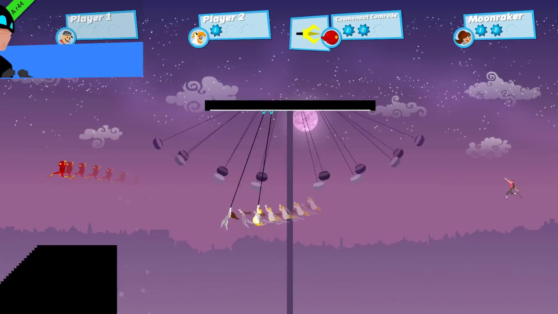极速奔跑者是一个拥有钩爪。增益道具,和各种可互动场景的4人竞技平台类游戏。奔跑,跳跃,荡来荡去,发射导弹,用钩爪将对手弄出屏幕外!