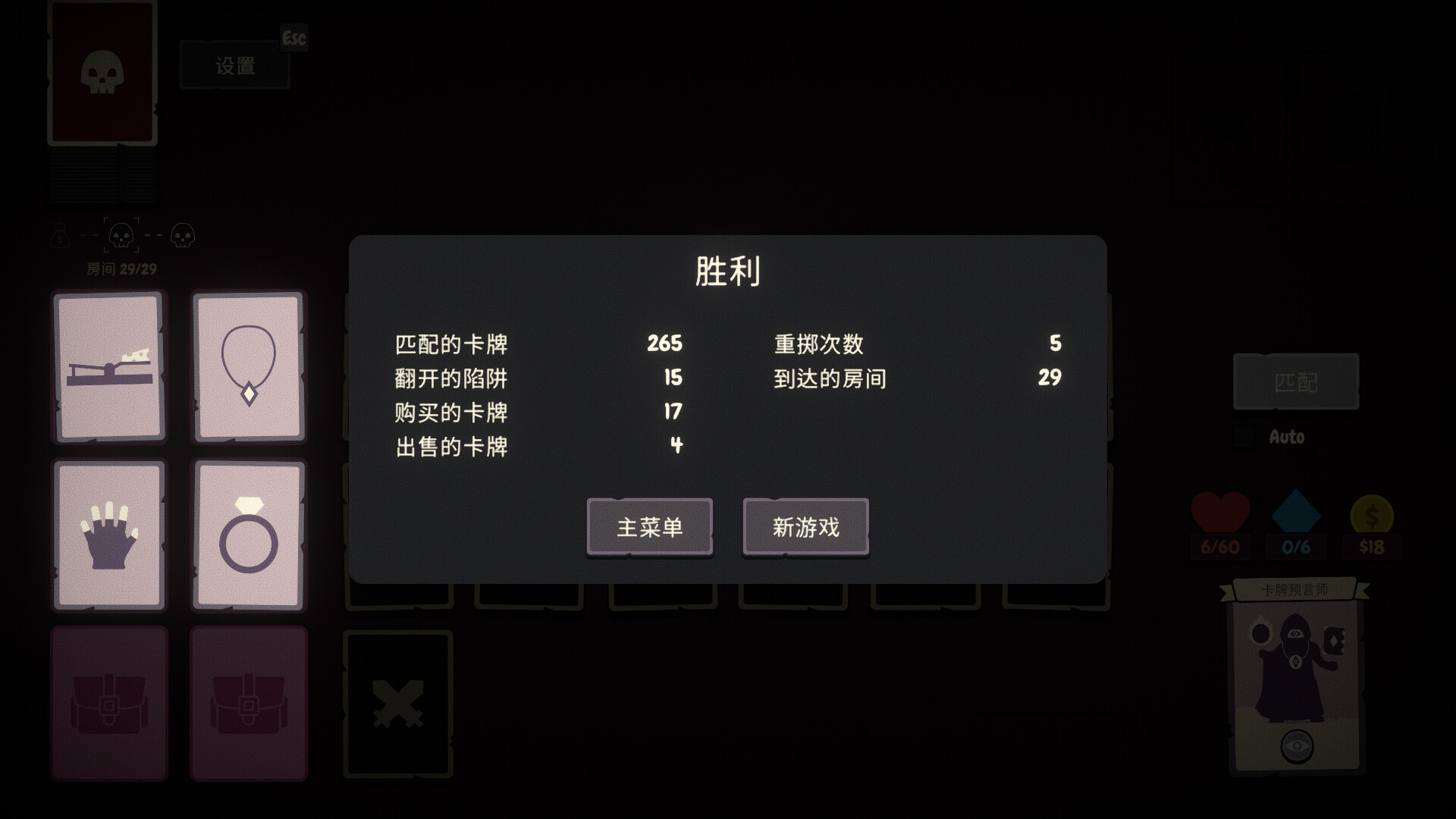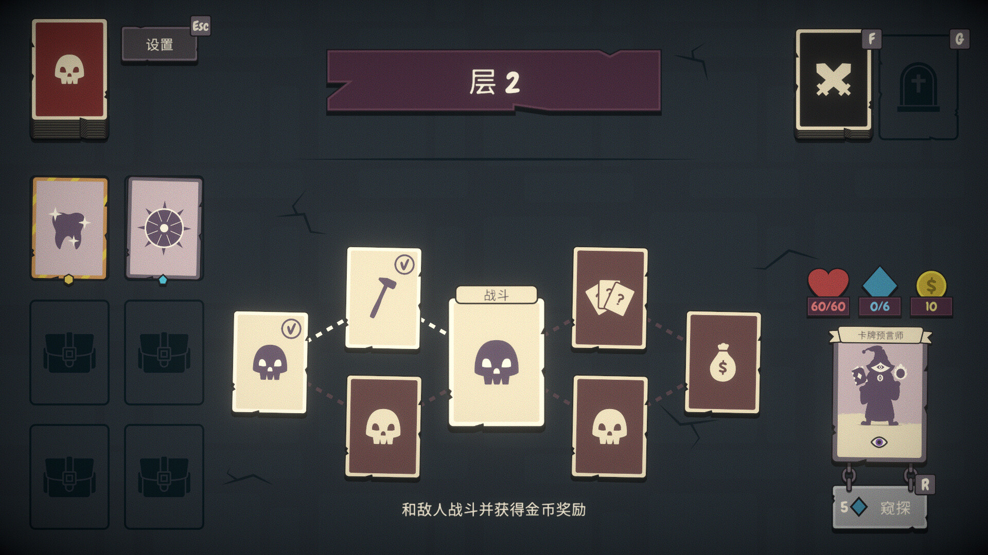每次战斗结束后,你将访问商人的商品,在那里你可以购买新的遗物和消耗品卡牌。遗物具有被动效果,满足特定条件时触发;消耗品则在战斗中帮助你。尝试不同的组合,找到适合你的策略!