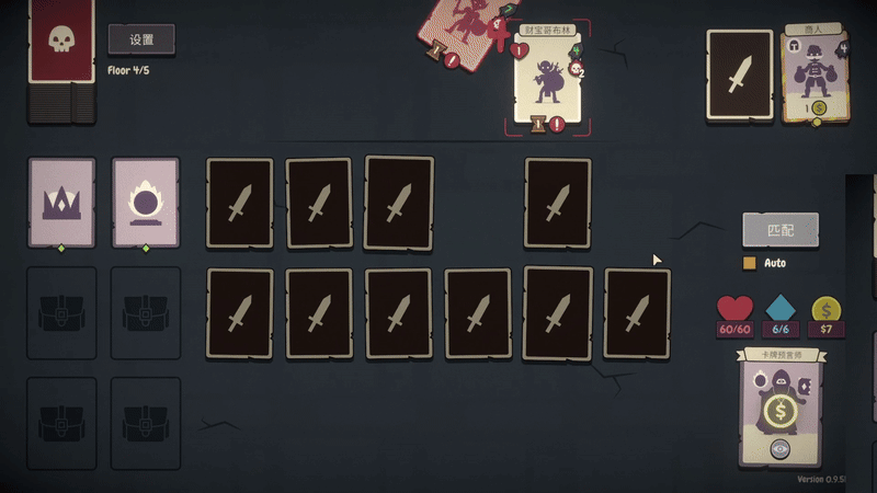 记住桌面上的卡牌位置。将英雄和相应的武器配对以攻击敌人,务必避开陷阱。陷阱会对你造成伤害并跳过你的回合。敌人有自己的攻击计数器,每回合递减,靠近发起攻击。