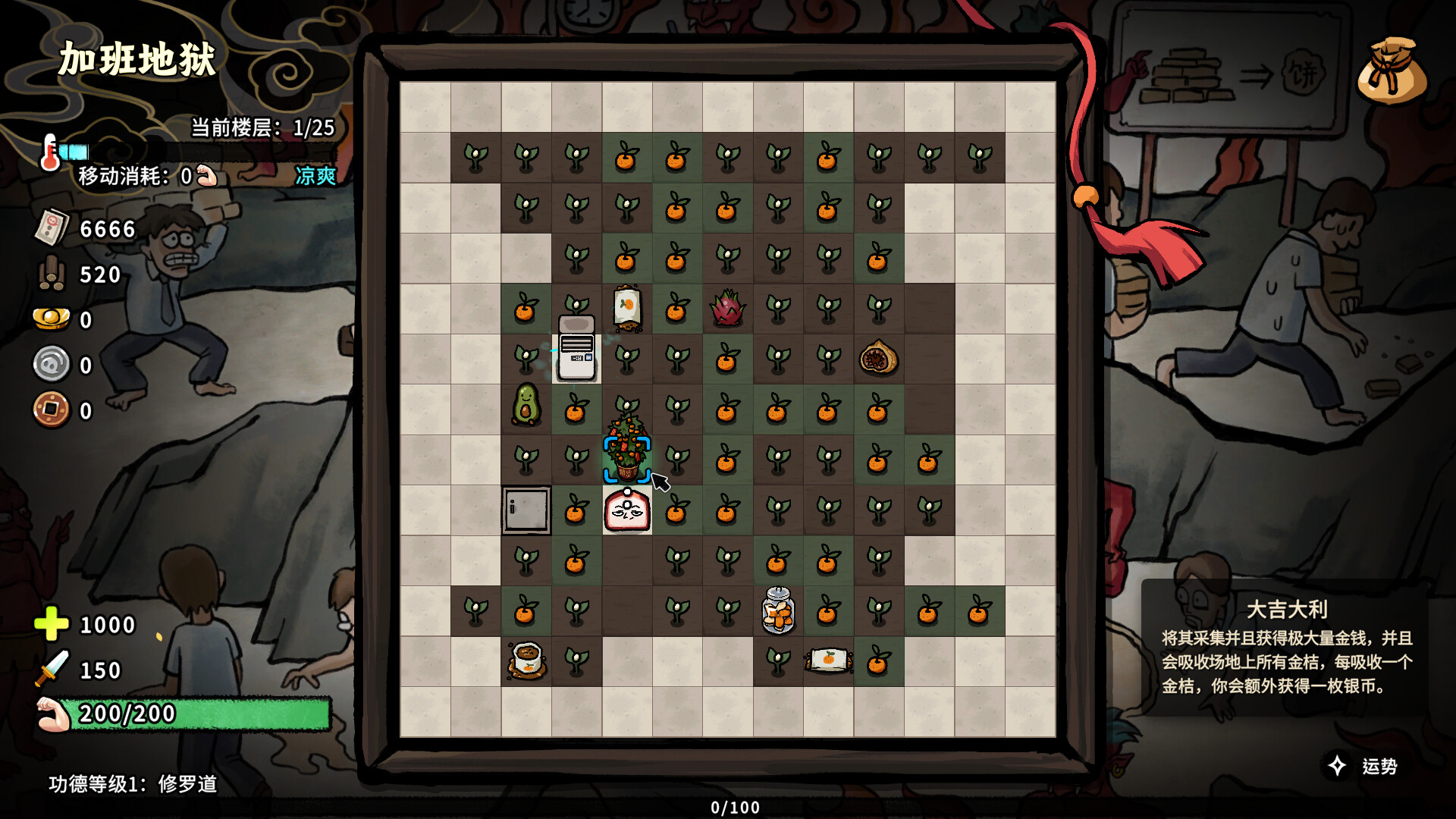 在层层不同主题的地狱往下探索,收集各种地狱特产和宝物。 在因果花园收集各种资源,配合不同果实的效果打出最高效收成。你的功德等级越高,运气也会越高!