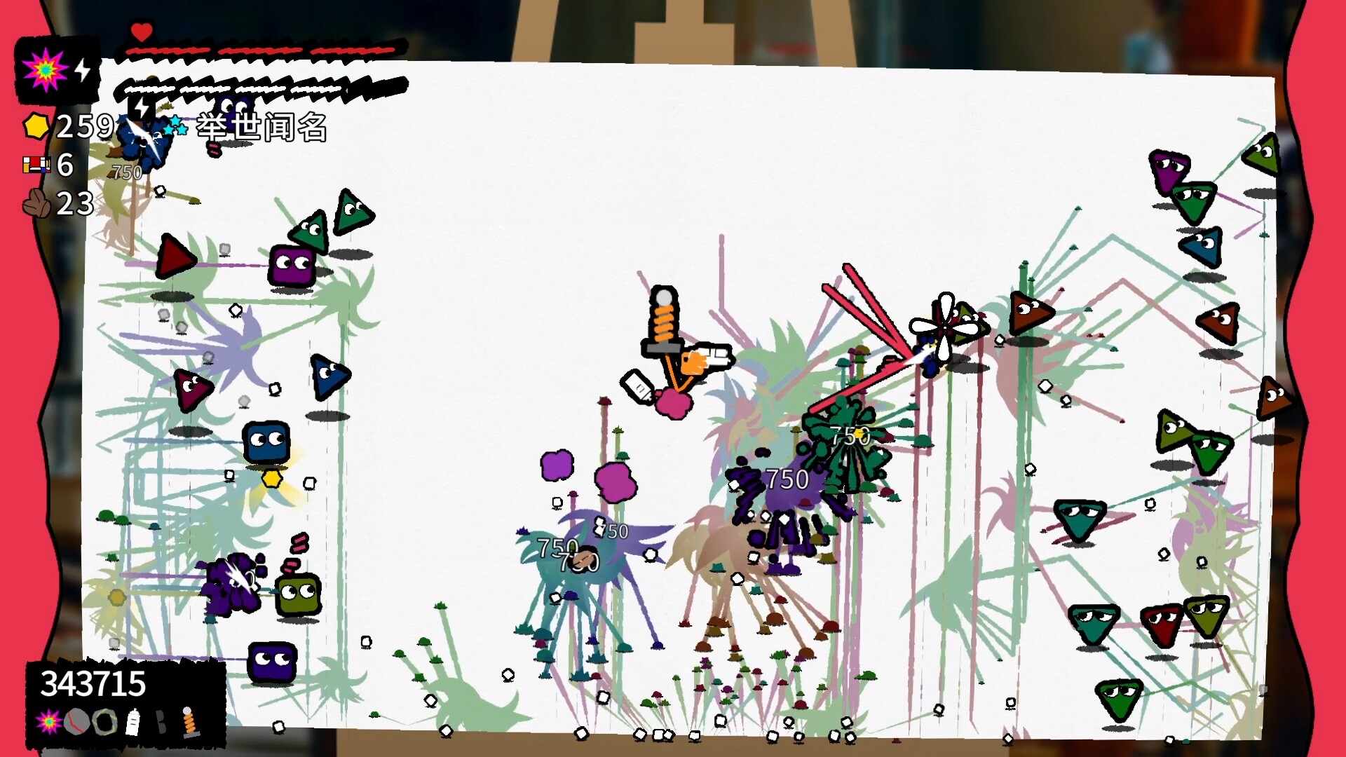 八种武器、十余种角色、四十多种配色,百余种搭配,还有随机刷新的各种道具。当踏入战场,你唯一要做的,就是抓起最癫狂的组合,在画布上劈开彩虹血路!