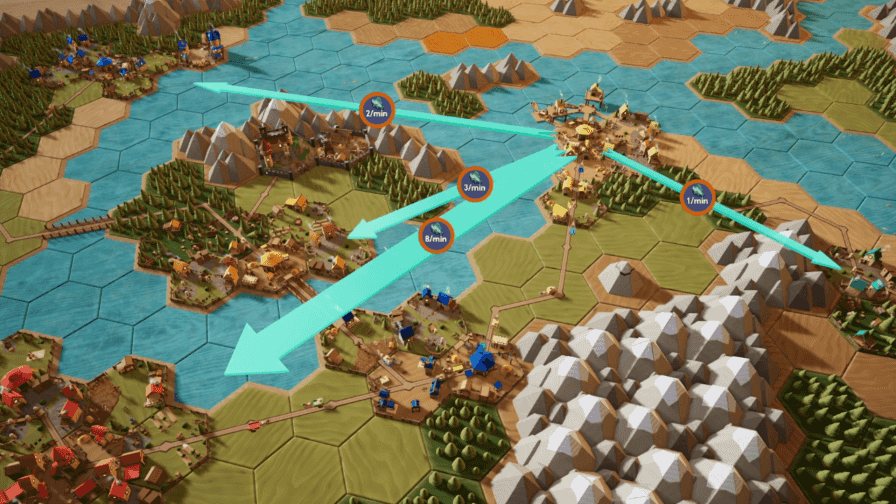在游戏中,你将以国王的身份,肩负起建设城镇、使其走向繁荣的重任。持续保障城镇货物的稳定供应,精准满足居民需求,提高市民的满意度。贸易会在城镇之间自动展开,每个城镇都有自己的预算的资源,你会从中收获税收,享受财富增长带来的成就感!
